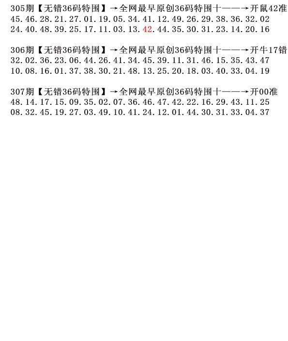 305期无错36码开 鼠42准√ |